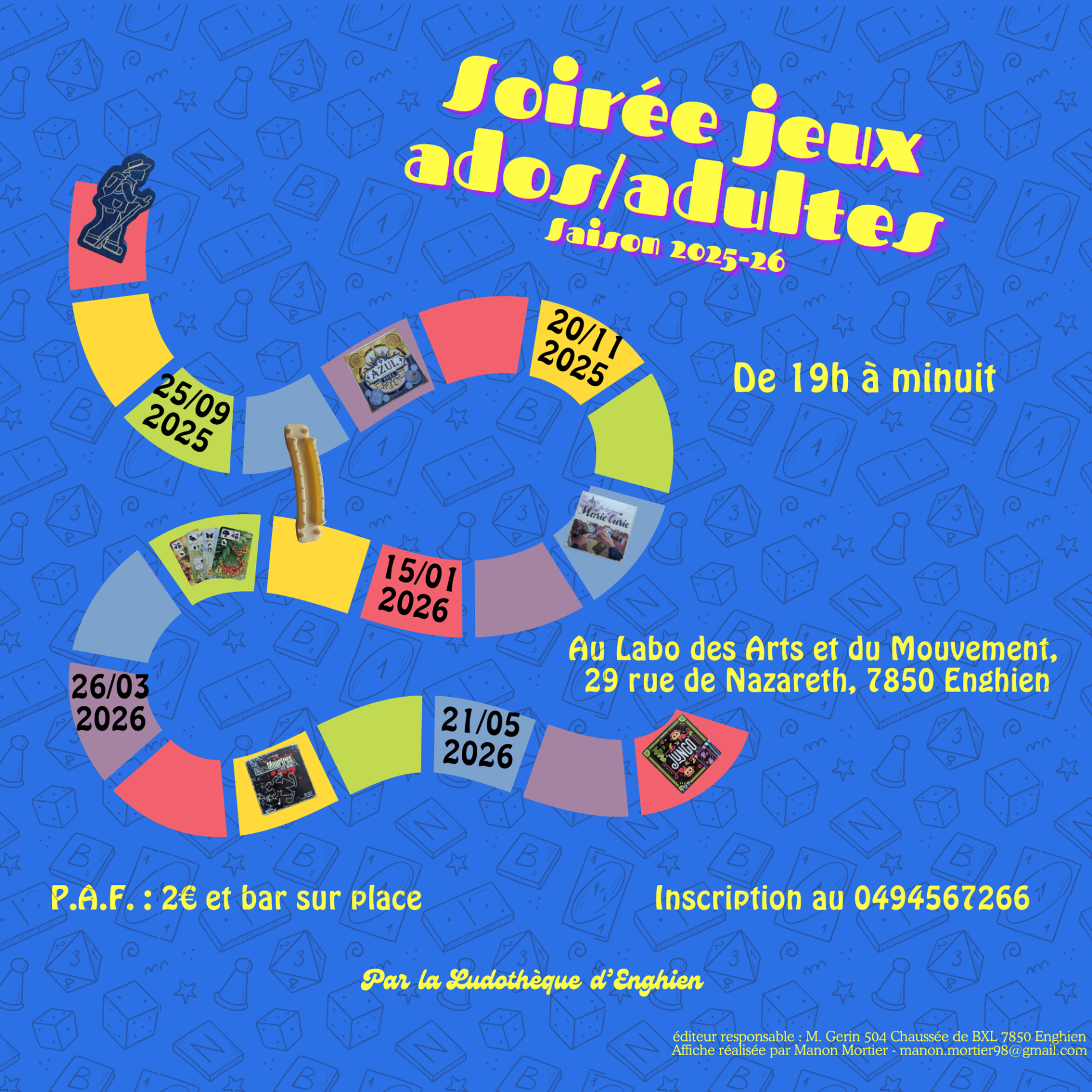 De plus, La Ludothèque organise, tous les 2 mois, des soirées jeux pour ados et adultes au LABO des Arts et du Mouvement.